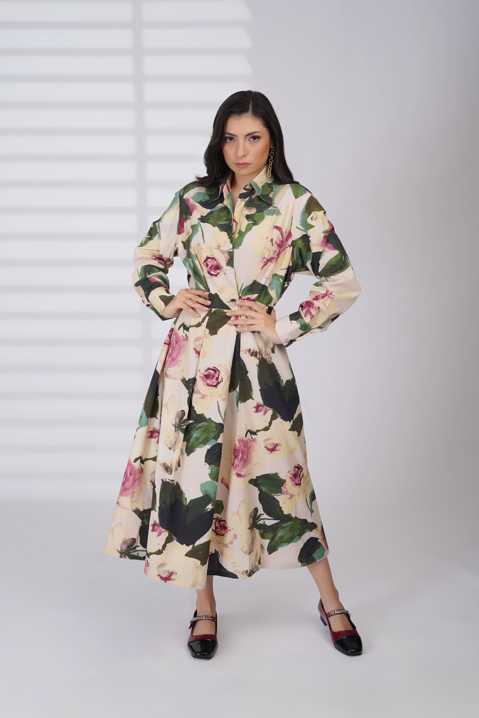 A watercolor garden comes alive in this belted floral shirt dress. Made from smooth, breathable cotton popplin, ideal for floral-forward afternoons.