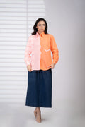Dual-tone coral-orange stripes bring unexpected charm to this relaxed fit shirt. Style it with denims or culottes for everyday holiday luxe.fabric-cotton popplin.
