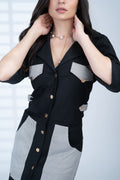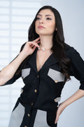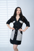 Tailored in midnight black with striped utility pockets, this A-Line dress delivers structured chic with a hint of maritime polish.