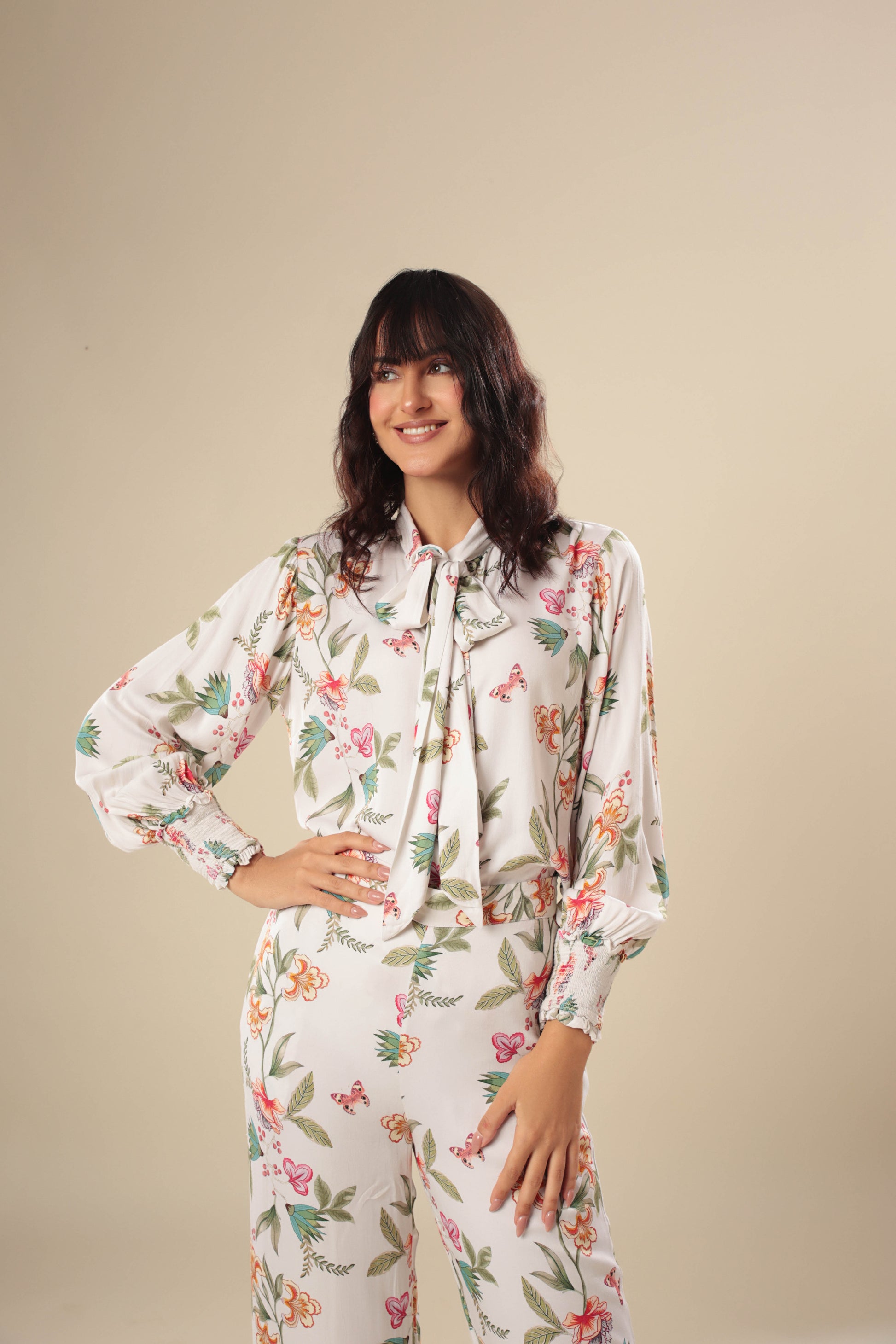 - Design: Lezin modal satin floral co-ord set with a tieable knot at the neck.