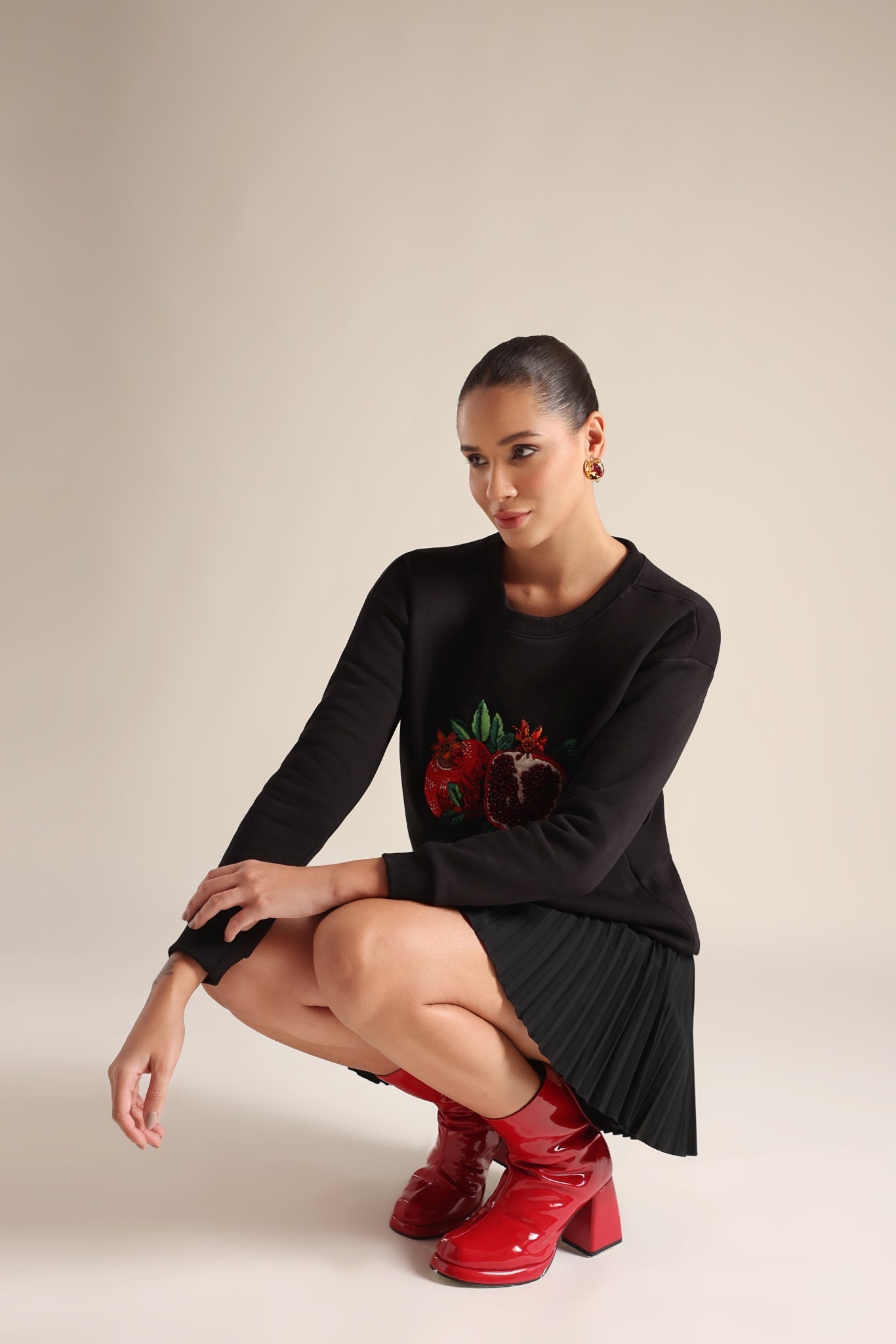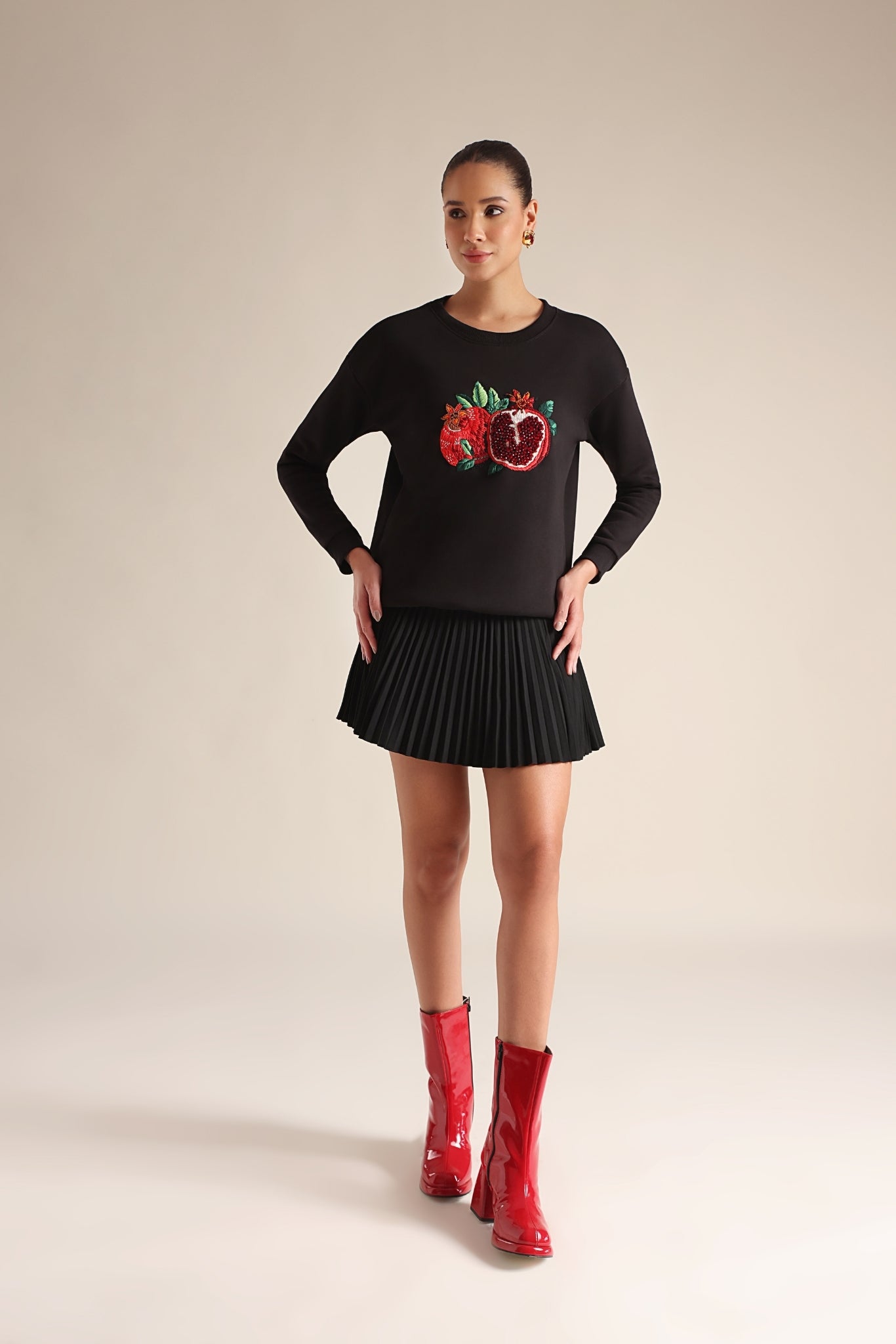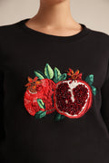 Sequin-embroidered pomegranates that add a vibrant pop of color and artistry